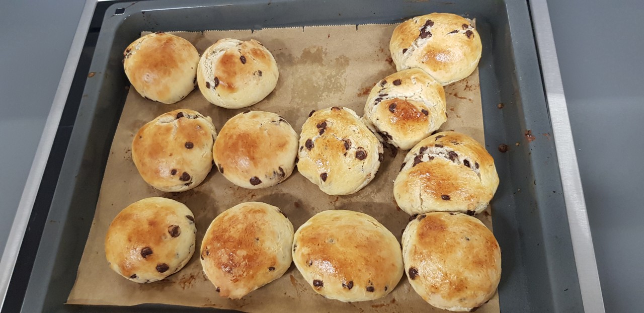 Mein Tipp: Wiege den Teig ab, damit die Brötchen gleichmäßig backen.