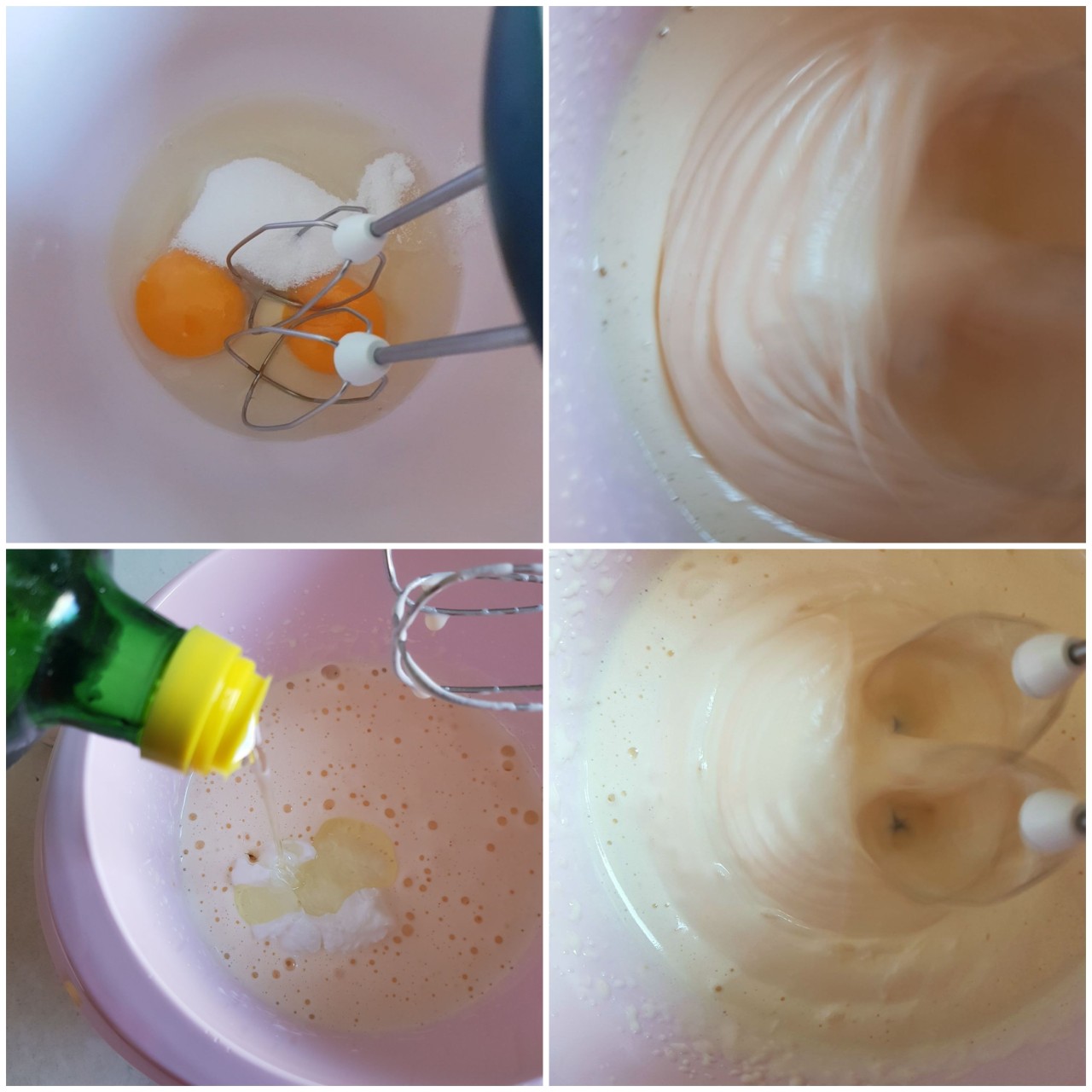Eier, Zucker, Vanillezucker und die Prise Salz sehr schaumig aufschlagen