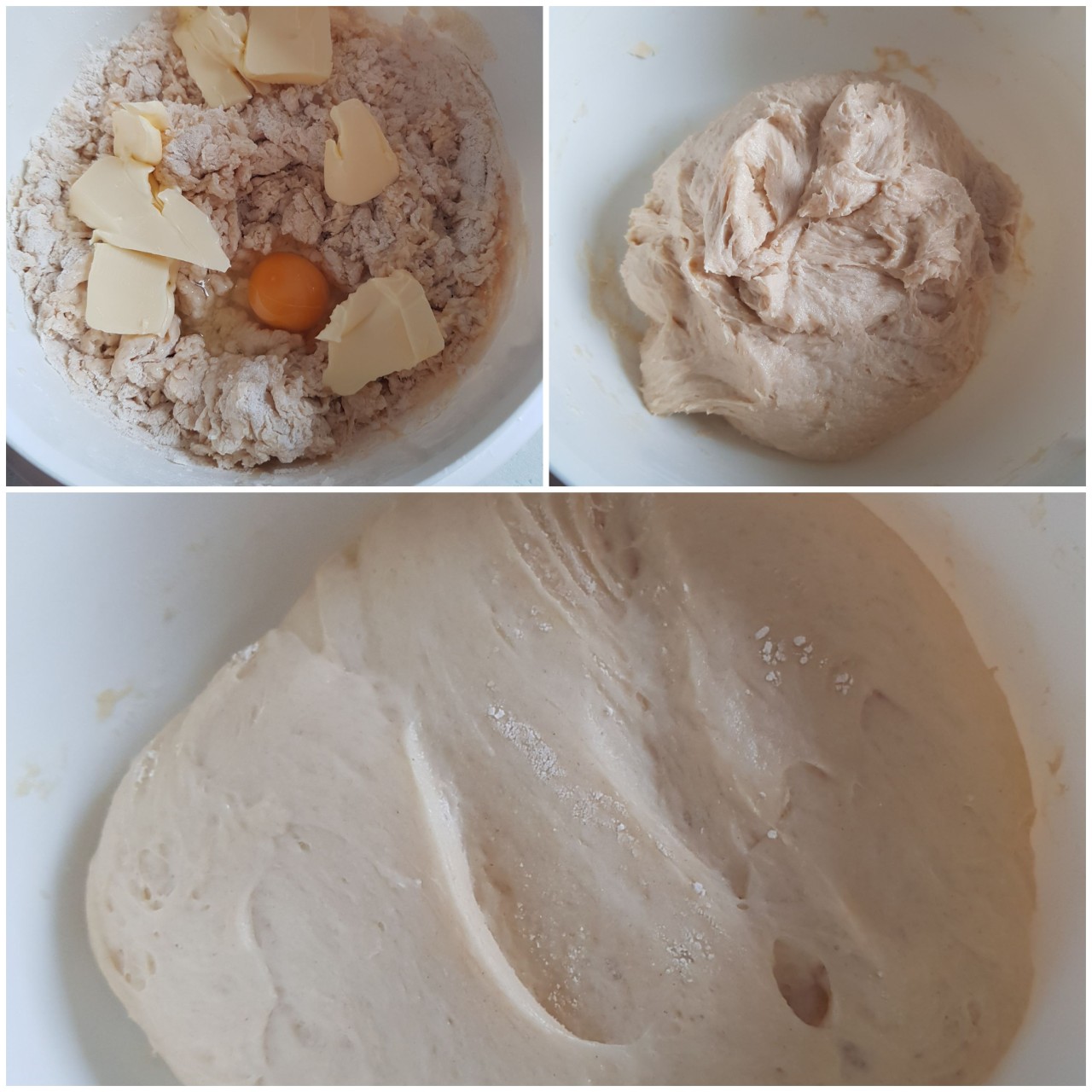 Gib Mehl und Zucker in eine Schüssel brösel die Hefe hinein. Erwärme die Milch erwärmen gieß sie dazu und verknete zunächst alles miteinander. Füge nun noch das Ei und die weiche Butter hinzu und knete alles nun zu einem glatten Teig. Lass diesen nun zugedeckt für mindestens 1 Stunde an einem warmen Ort auf das Doppelte aufgehen.