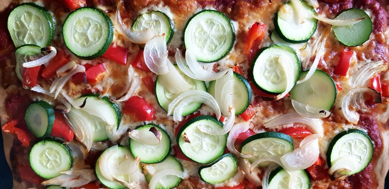 Nun musst Du den Teig nur noch mit Deinen Wunschzutaten belegen und ihn dann Du den Teig auf der mittleren Schiene für etwa 20 Minuten backen.